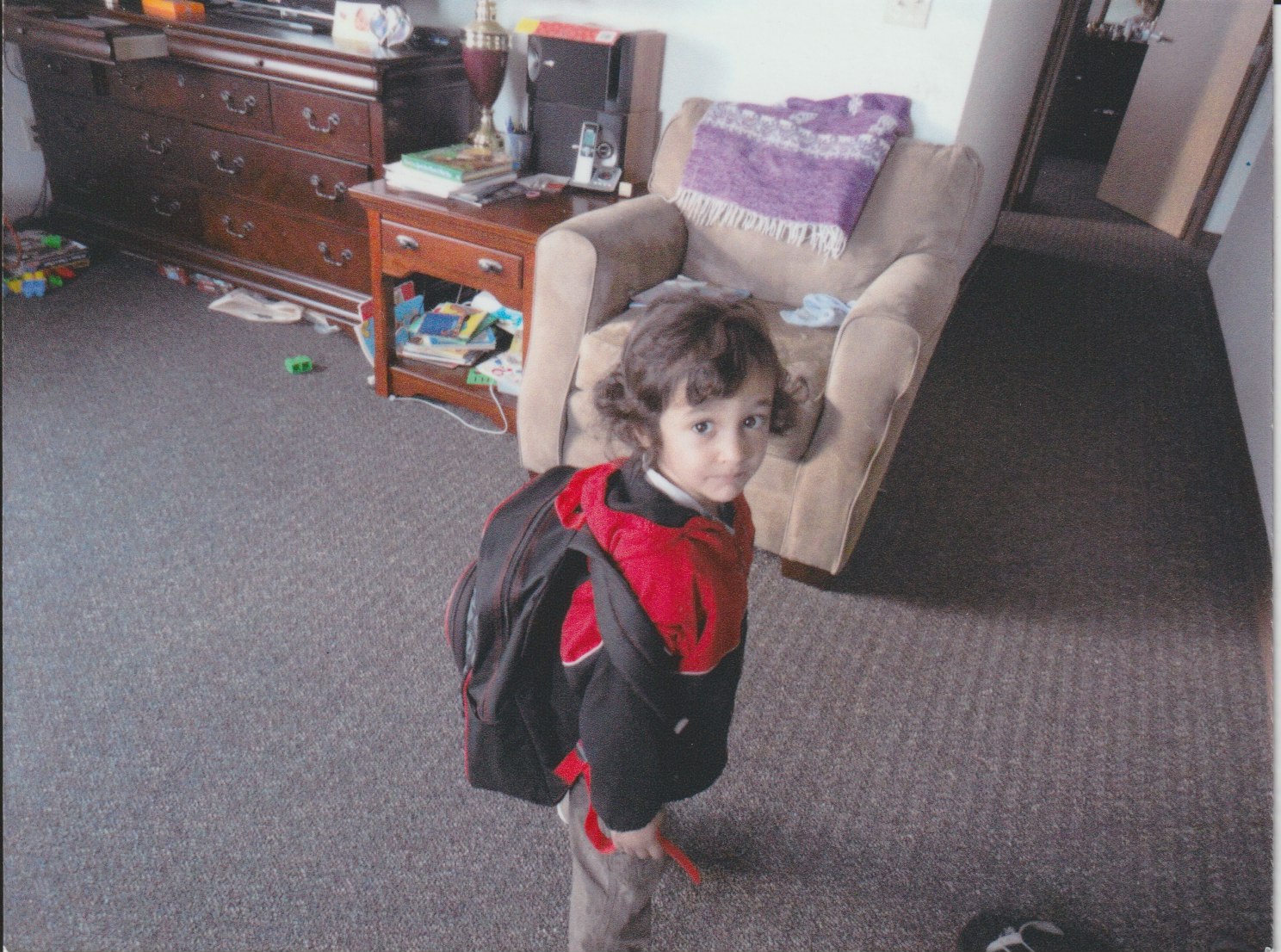Ahimsa, all ready for a day at Pre-School! Sand Point, Alaska on Popov Island, Off the Lower Alaska Peninsula and the beginning of the Aleutian Chain. His Dad worked there as Superintendent of Schools for the Region. His Mom was the Sand Point School Cook!